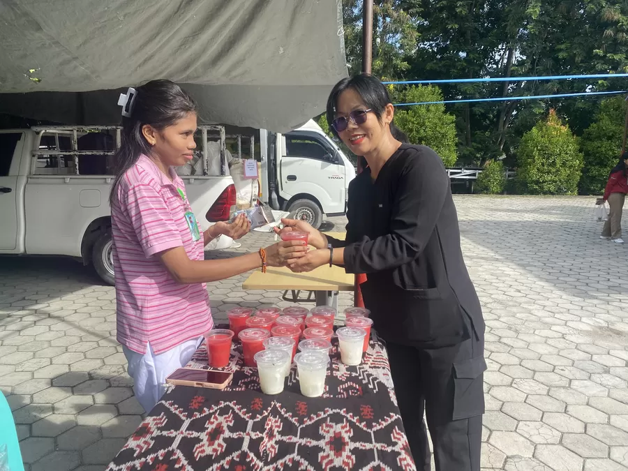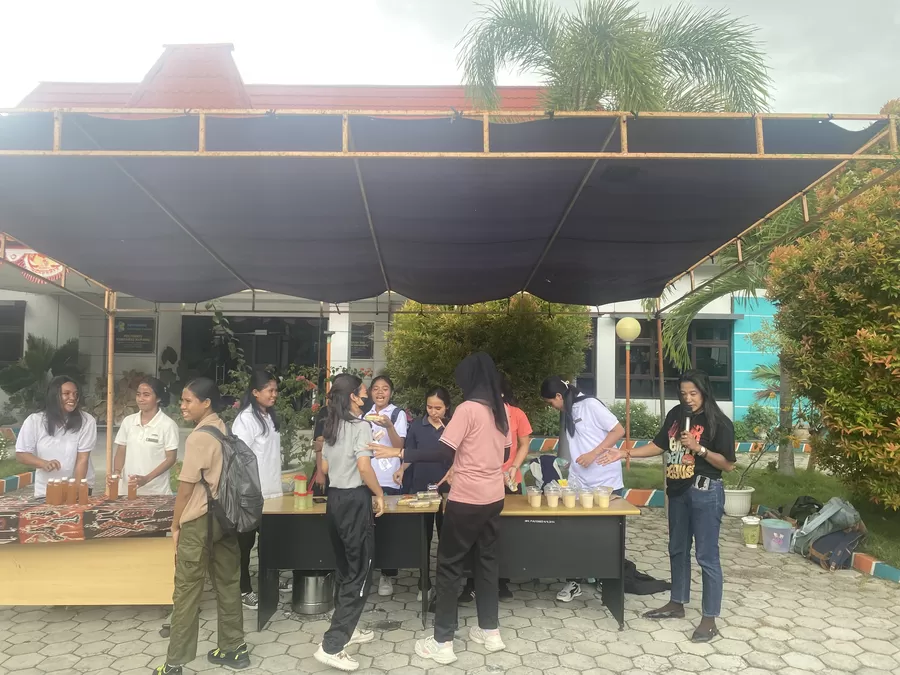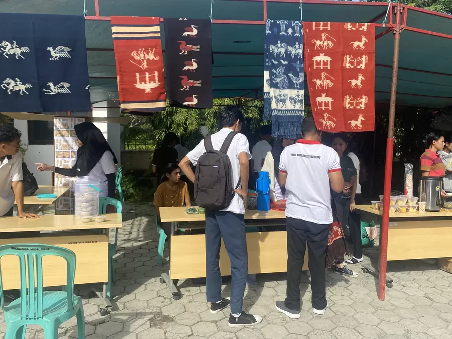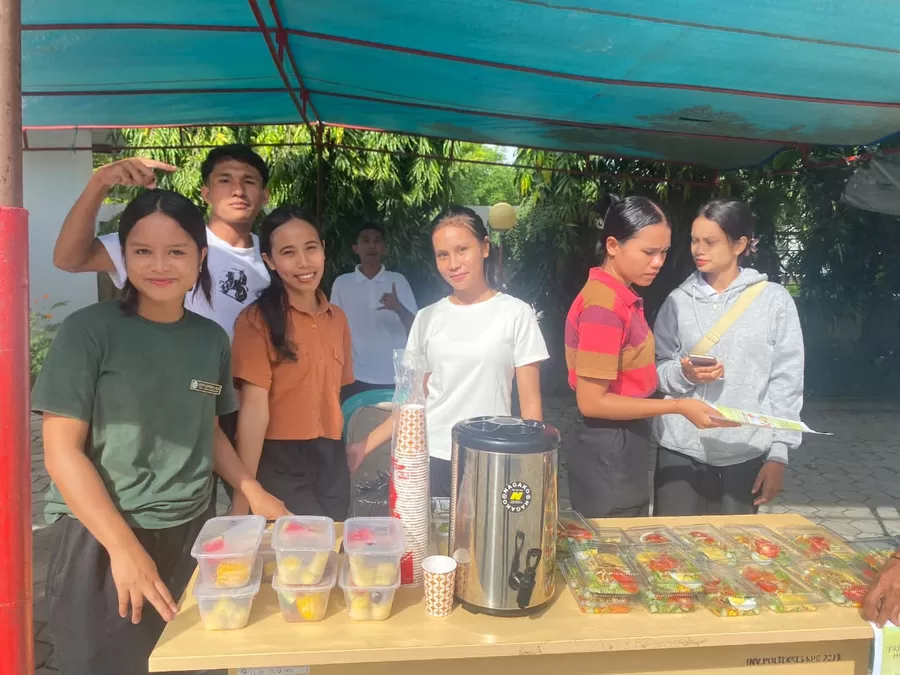 Mahasiswa tingkat tiga, Akademi Keperawatan Kemenkes Kupang, Prodi Keperawatan Waingapu melakukan bazar jajanan sehat hasil produk mahasiswa yang program Mata Kuliah Kewirausahaan.